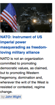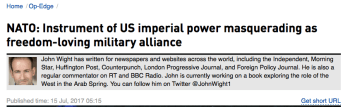 Another current (7/15/2017) RT Op-Edge article on NATO aggression and the evils of Western capitalism, with the USA as the head of the imperialist Western, planet-endangering bloc.