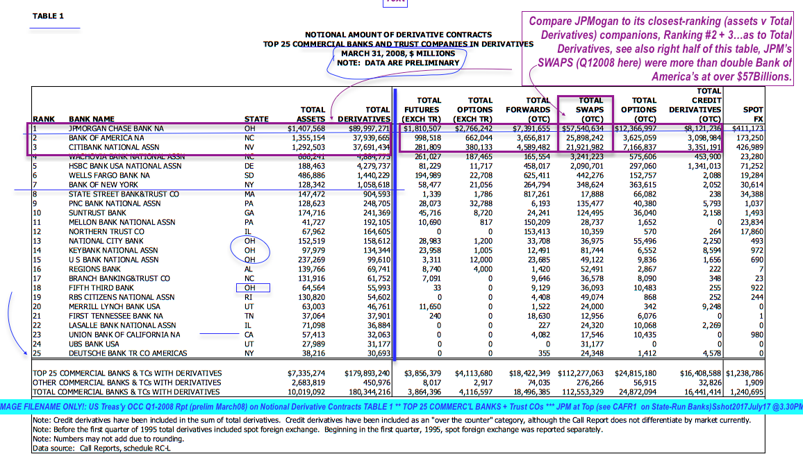 State-Run Banks? At Least Two Activists Who Understand CAFRs, How Governments Stockpile Assets, Take Polar Opposite Stances on What to Do About It (Burien, Herman). And Perhaps Why.. [Published 7/17/2017] » US Treas’y OCC Q1-2008 Rpt (prelim March08) on Notional Derivative Contracts TABLE 1 ** TOP 25 COMMERC’L BANKS + Trust COs *** JPM at Top (see CAFR1 on State-Run Banks)Sshot2017July17 @