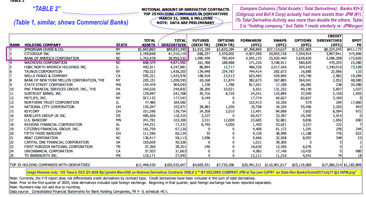 State-Run Banks? At Least Two Activists Who Understand CAFRs, How Governments Stockpile Assets, Take Polar Opposite Stances on What to Do About It (Burien, Herman). And Perhaps Why.. [Published 7/17/2017] » US Treas’y OCC Q1-2008 Rpt (prelim March08) on Notional Derivatives Contracts TABLE 2 ** BY HOLDING COMPANY JPM at Top (see CAFR1 on State-Run Banks)Sshot2017July17 @3.34PM