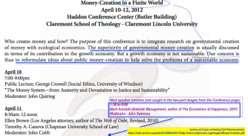 [#1#]is promoting the “Money in a Finite World” conference, and Ellen Brown, both in the title, and in the closing comments, and doing this April, 2012 (also the time of that conference):
