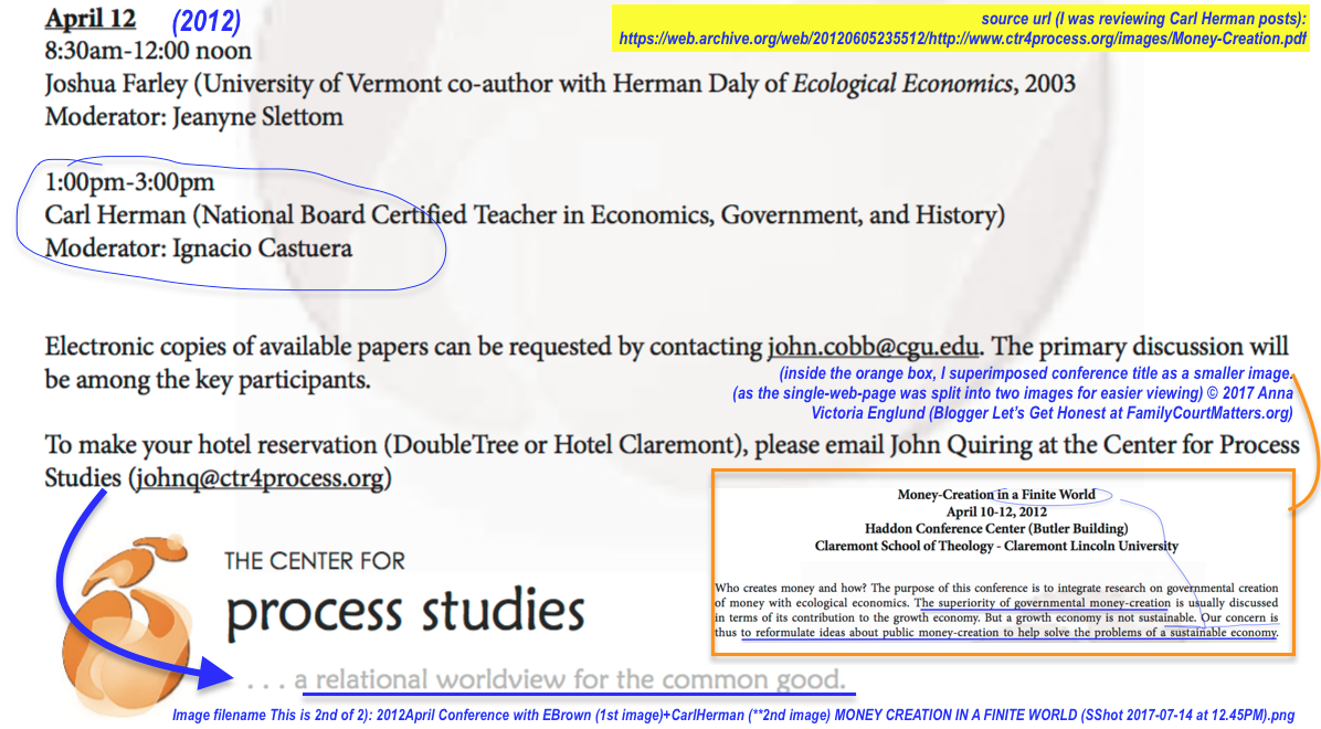 To Identify and UNDERstand is To Know Why (and How) to WITHstand. (The Public’s Assigned Place on the Tax Continuum Pecking Order). [from “Do You Know Your ABA, APA…?” Oct. 2014 Post Update @07/18/2017] » 2012April Conference with EBrown (1st image)+CarlHerman (**2nd image) MONEY CREATION IN A FINITE WORLD (SShot 2017-07-14 at 12.45PM)