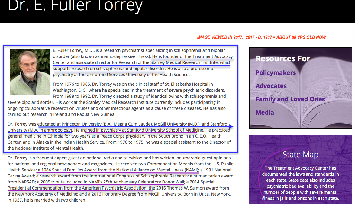 The Broad Institute (MIT, Harvard, TBF*, 2008) and Stanley Family Foundation (see MBI, Inc.)-funded Center for Psychiatric Research (“schizophrenic, bi-polar”) Testing and Treatment Advocacy (“TAC”) and Gene-Editing (CRISPR-Cas9) USPTO Patent Wars with UCBerkeley et al. (written 6/15/17, posted 7/23/2017) » SRMI (EIN#061610506 and-or T-A-C) OrgWebsites, Dr E Fuller Torrey, Bks on Freud, EzraPound + reviews (See-Also Broad Inst+its Stanley Fund) SShot 2017Jun14 @6.52.12 PM