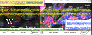 The Whitehead Institute hasn’t posted an annual report since FY2014 (I write in nearly August 2017) and not one Form 990 is shown. Getting even to the Annual Reports is a reach, and there are no posted audited financial statements anywhere on the site, that I can see. Look at the top and bottom of the home page; between this like a newspaper layout of awards or recognitions for its famous people involved or their accomplishments. I have no problem with that — BUT not when financials are omitted, or even a reference to the EIN#. Many organizations will post this — why doesn’t this one?