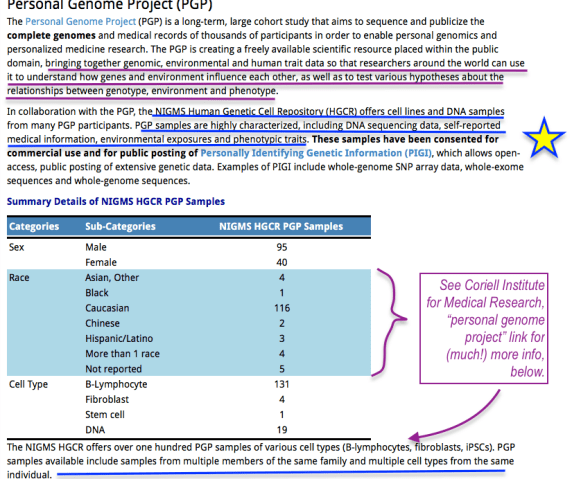 Some of the pages on Harvard’s PGP project also reference the Coriell Institute for Medical Research: