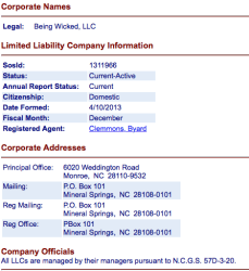 From NC Corporations Search: Just RebeccaSkloot.com’s web designer (fine print bottom, I looked it up off-site as the “BeingWicked.com” gave next to no clues on In Which State It Existed…