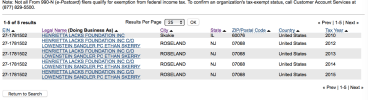 Follow-up on that foundation proved elusive, as the website only mentions that it is a 501©3 and its board members, policies, etc. I found it only reported revenues over $50K once (FY2011), when it filed a Form 990EZ with showing “NJ” showing just 3 on the board. They rec’d $57K and distributed $25K, none of which is detailed (“to whom”) on the form.