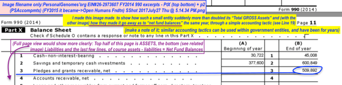 PersonalGenomes.rg FY2014 990, Pt X Balance Sheet, “Assets” excerpt. Click image to enlarge or here for the whole return.