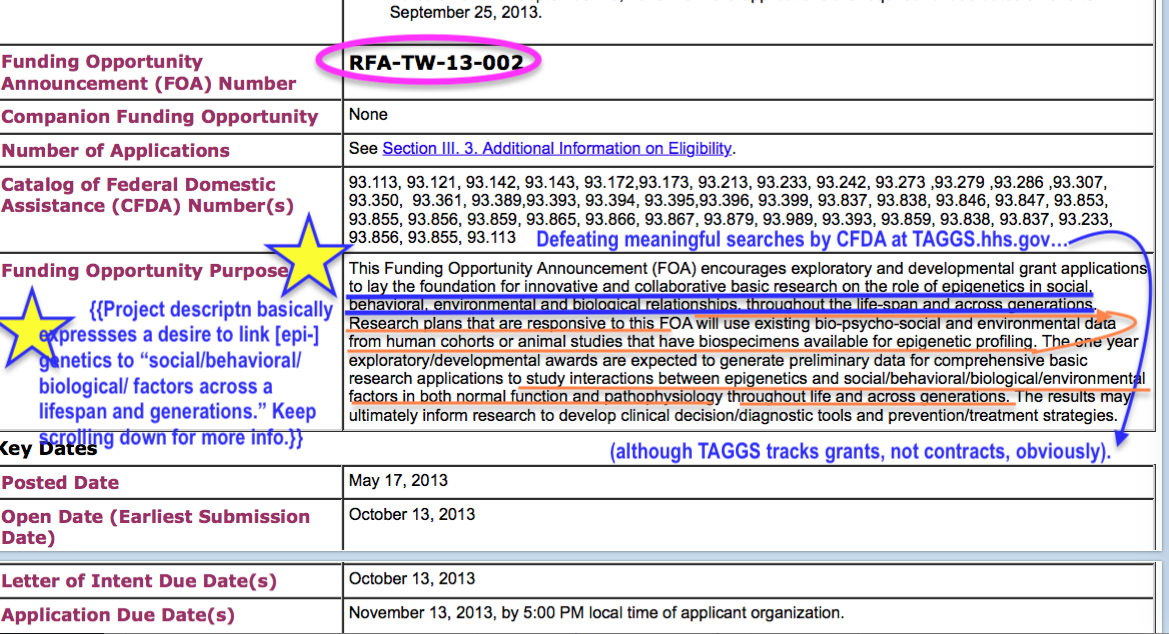 An Alternate Viewpoint on the Anti-Smoking / Smoking Causes Cancer! Campaign and its Syndicated (?) Backers incl. the Whiteheads, the Laskers, the NIH and the U.S. Congress (from SmokersHistory.com and Other Sources. See also Tobacco Lawsuits and 1998 MSA Settlement Funds ~~} American Legacy Foundation, now the so-called Truth Initiative®) (Published 8/5/2017) » 02 Your Tax Dollars at work~>NIH’s OppNET~>FOA RFA-TW-13-002 (closed 2014) Rsrch on Role of Epigentics in Social Behav’rl Env+Biologicl ‘Relatnships thru-out life~across Gentns (Activ