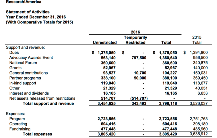 An Alternate Viewpoint on the Anti-Smoking / Smoking Causes Cancer! Campaign and its Syndicated (?) Backers incl. the Whiteheads, the Laskers, the NIH and the U.S. Congress (from SmokersHistory.com and Other Sources. See also Tobacco Lawsuits and 1998 MSA Settlement Funds ~~} American Legacy Foundation, now the so-called Truth Initiative®) (Published 8/5/2017) » Research!America FS (YE2016Dec) (Note 1 and Activities Statemt) from its website, viewed 2017Aug5 @3.36.09 PM