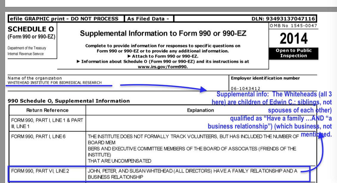 An Alternate Viewpoint on the Anti-Smoking / Smoking Causes Cancer! Campaign and its Syndicated (?) Backers incl. the Whiteheads, the Laskers, the NIH and the U.S. Congress (from SmokersHistory.com and Other Sources. See also Tobacco Lawsuits and 1998 MSA Settlement Funds ~~} American Legacy Foundation, now the so-called Truth Initiative®) (Published 8/5/2017) » WhitehdInstitute EIN#061043412 FYE<~ 201506_990 Excerpts Show ½B Assets (SchedD) in Other + 20M from Sale of Assets (etc) SShot 2017July28 Fri @ 4.41.37 PM