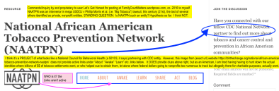 Annotations explain the context. Understand that Internet Archive snapshots don’t reflect how often a website was updated or changed, however, the 2014-2017 timeframe is still recent. How many people comprehend the relationships between the funding of the website, and the inter-related nonprofits involved? Or how tobacco cessation and major funding for “Behavioral Management/Modification/ Mental Health” are now mainstreamed within federal health policy?