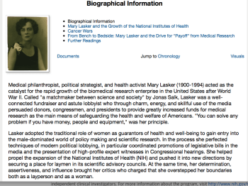 Mary Lasker and the Growth of the National Institutes of Health {<== that’s an active link to an NIH website}