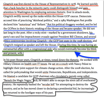 From Newt in His Own Words: 33 Years of Bomb-Throwing, 4/7/2011 in Mother Jones, by David Corn & Tim Murphy, Image 1 of 2