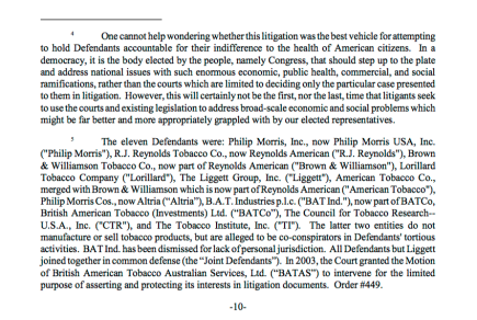 *From my Dec. 15, 2016 “US Tobacco Lawsuits and Settlements” page, notice the list of intervenors. I also supplied the link to the entire amended document (over 1,500 pages), which overview (after pages of Table of Contents listing the counts, the defendants, etc.)