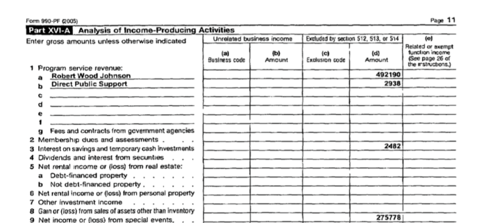 NAAPTN (EIN#56-2211875) earlier return, Income-producing activities show over $400K from “Robert Wood Johnson” (probably the Foundation — RWJF — was meant) but no description…