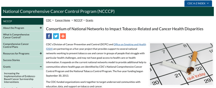 Page from Centers for Disease Control & Prevention (that part of banner not shown) lists awardees for this program, the only one representing African-American populations is the one I’m posting on today.