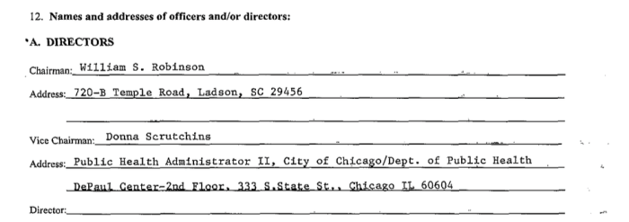 From FL registration (2003), this year only reported Ms. Scrutchens of Chicago as on NAAPTN. See “sunbiz.org” to look up.
