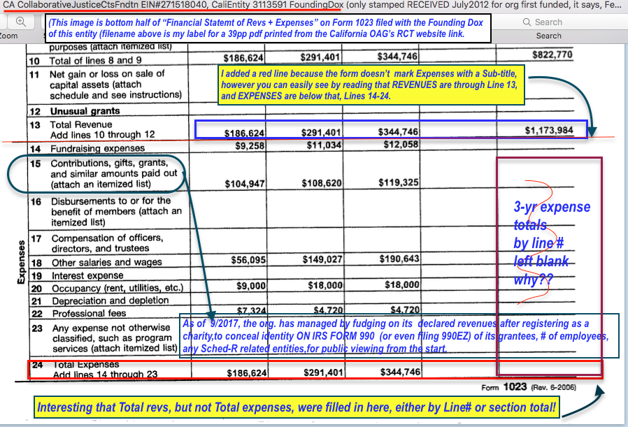 Introducing A New Page, How and When Problem-Solving (make that ‘Collaborative Justice’) Courts were Institutionalized and other Consolidate/ Coordinate/Standardize/PRIVATIZE Stories at Courts.CA.Gov. AND, some of the Backdrop (Personal Experience of Turn-of-Century Social Policy towards Women Reporting Abuse and Their Efforts to Exit It… ) [Publ. Sept. 15, 2017] » CA CJCFndtn Fnd’gDox Form1023 Declaratns (YES answers + Statemt of Revs+Exps YE2010-2012 Conflicts with IRS filings and subsequent RRFs submitted (2017Sep16 Sat @5.36.32 PM