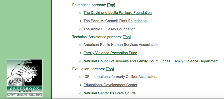 Click image to enlarge or here for the whole list of “Greenbook Initiative Partners”. I’ve posted on this often, esp. in 2016 (but also earlier). While ICF is on the federal faucet for PRWORA-related and other programming, it’s neutral enough to evaluate the hand that feeds it when it comes to Domestic VIolence, Child Maltreatment and Custody Issues? Guess so…
