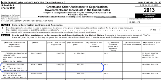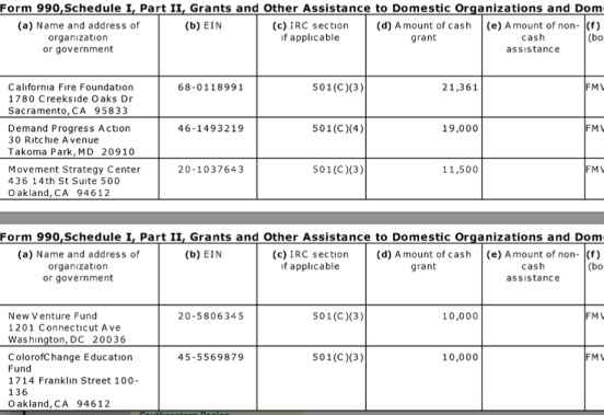 Here’s the image showing the earlier, larger (over ½ million dollars) grants to Demand Progress Action: