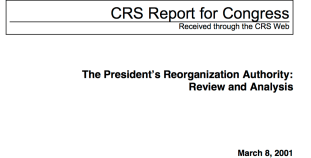 … I was just looking for another reference to CRS reports on the Reorganization Act, remembering that the Congressional Research Services (“CRS”) had at least a few on the topic. EVERYCRS.com however is no government website. [Will repeat this para. & title with link again lower down].