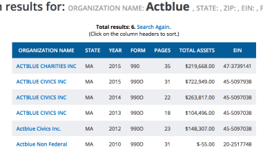 So, let’s make that a total of six (6) entities over time (found so far by searching Form 990 database and looking at the Schedule R showing “related tax-exempt entities” on some of the same). ActBlue Charities (just started 2015, or should we make that 2016?, ActBlueCivics filing a Form 990O, which mentions several other controlled entities (even providing four different EIN#s, of which I only located a single year’s filing for just one of them, ActBlue Non-Federal…)