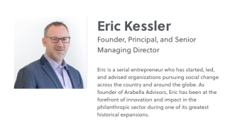 [I went to New Venture Fund website, listing just a few board of directors, incl. Mr. Kessler. Here’s a profile of another Board member, also from Middlebury College with Chicago experience. Not to become confused; the images are featuring two “Arabella Advisors LLC” key people (Kessler & Boyd), but this is taken from the 501©3, formerly called Arabella Legacy Fund, but now “New Venture Fund” to give a “flavor” of the type of board members involved and their backgrounds: (the different color background inside solid maroon border stands in for usual “blockquote” symbol: