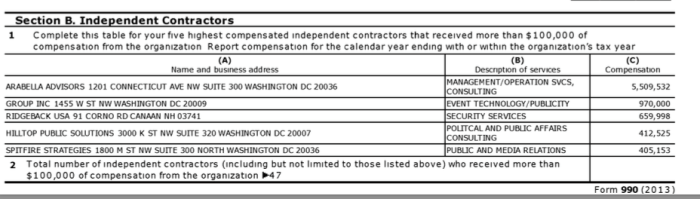 EVERYCRSReport.com: Project of Demand Progress (a 501©3 + 501©4 each w/ fiscal agent~New Venture Fund (formerly Arabella Legacy Fund), Sixteen Thirty Fund), the R Street Institute (formerly DC Progress). So, Will the Real Sponsors Step Out from behind their Fiscal Agents, WITH NameTags, or Shall I Continue Outing Them?) [Last revised Sept.11, published “As-Is” Sept. 21, 2017] » New Venture Fund FY2013, Arabella Advisors (LLC not shown) subcontracted for 5’5M (next largest only 0’97M) ScrShot 2017Sep08 at 6.27.07 PM