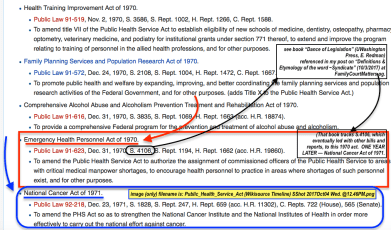 Public Health Service Act Timelines since 1944 through Affordable Care Act of 2010 (Incl. contributing Bill S.4108, right before before National Cancer Act of 1971). See also Tobacco Control Act of 2009 and NIH-FDA-related updates, Like: TCORS’ (so far) 14 Regulatory Science Resource Centers, or NCATS (2012ff) to better Advance Translational Science; predictably with continued Big Tobacco Litigation (protesting First Amendmt. Violations promoted by Tobacco Control Act of 2009) — and let’s not forget UCSF’s Multi-million-dollar, NIH- or FDA-sponsored: Centers, Institutes, and Famous Anti-smoking Professor. [Publ. Oct. 7 2017]