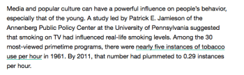 How ridiculous can this powerful coordinated forces against powerful tobacco, closely connected to (a) politics, especially in certain southern states, and (b) naturally, media — considering the advertising needed for marketing — get, over time?
