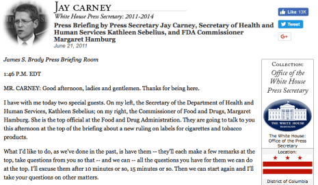 And, on the FDA/NIH partnership, the FDA portion…. The “Center for Tobacco Products” says it’s responsible for carrying out the 2009 Tobacco Control Act. While, as usual, not clarifying what “Center” means in budgetary or hierarchical/organizational terms, it’s clear we are meant to share what parts of the good news is divulged here, on social media, like which law it’s implementing, and its Vision Statement: