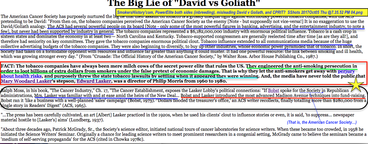 Public Health Service Act Timelines since 1944 through Affordable Care Act of 2010 (Incl. contributing Bill S.4108, right before before National Cancer Act of 1971). See also Tobacco Control Act of 2009 and NIH-FDA-related updates, Like: TCORS’ (so far) 14 Regulatory Science Resource Centers, or NCATS (2012ff) to better Advance Translational Science; predictably with continued Big Tobacco Litigation (protesting First Amendmt. Violations promoted by Tobacco Control Act of 2009) — and let’s not forget UCSF’s Multi-million-dollar, NIH- or FDA-sponsored: Centers, Institutes, and Famous Anti-smoking Professor. [Publ. Oct. 7 2017] » SmokersHistory’com, PowerElite both sides (inbreeding), misleading David v Goliath, and CPRIT? SShots 2017Oct05 Thu @7.35.52 PM 04