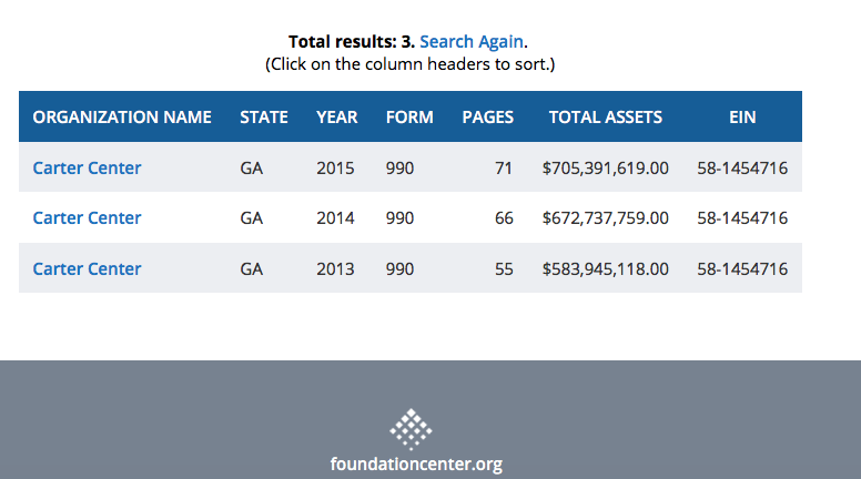 The Carter Center recent Forms 990PF (check out Sched R Pt. III on any year). EIN# 5814854716 for this entity.