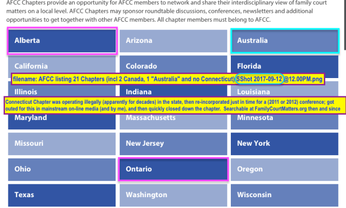 About Holidays, Speaking Personally (Personal Backdrop to Post-PRWORA Social Policy towards Women Who ~Just Say No!~ to Abuse and Proceed in Misplaced Belief They can actually Exit it) [started Sept. 18, Publ. Oct. 9, 2017, see also Collaborative Justice post/page]. » AFCC listing 21 Chapters (incl 2 Canada, 1 Australia and no Connecticut) SShot 2017-09-12 @12.00PM