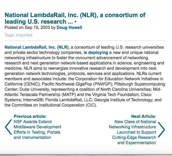 http://internet2.edu/news/details/3695. Not shown — this is a 2003 article. See Wiki for follow up info on NLR.