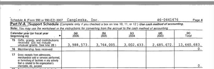 Cangleska Inc (SD, EIN#46-0441476) Forms 990 mostly 2007 + 2008 excerpts~ 2017Oct21 (8 images, self-explanatory)