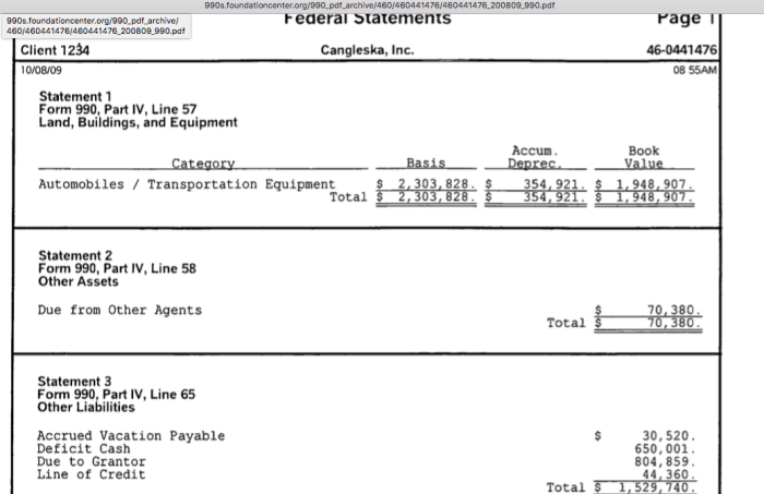 Cangleska Inc (SD, EIN#46-0441476) Forms 990 mostly 2007 + 2008 excerpts~ 2017Oct21 (8 images, self-explanatory)
