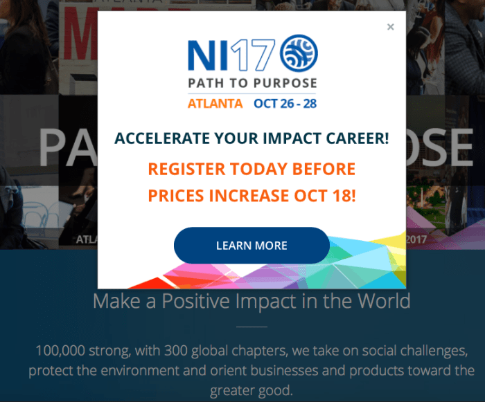 ABIS affiliate member (context: “Health as an Asset” conference at Rutgers) Net Impact (Calif.) advertising its Oct 2017 conference in Atlanta.