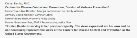 Kirsten Rambo, Ph.D., I see, in Dec. 2016, was reported as becoming the new Executive Director in a domestic violence shelter on the opposite coast (California), San Luis Obispo County, after a leadership pair (Exec. and Deputy Exec. Director) resigned suddenly, complaining about work conditions and a “climate of chaos and distrust.” I felt this was odd enough to report, especially if she’s Exec Dir. of a California entity while on the board of a batterers-interventions-services provider on the opposite coast (i.e., Georgia) and with a background under HHS, that is the CDC (which has a major foundation supporting it, by the same name, in Georgia). If she is still at the California shelter AND “men stopping violence” board member, this should be made known on the shelter website. IS IT?