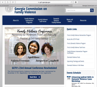 Current look at GA Commission on Family Violence Pls. notice “Enhancing Judicial Skills” at bottom right. This is taking place (as I write) Oct. 22 – 25th, 2017! Below (but not visible in image) a Sept. one was for DV advocates.
