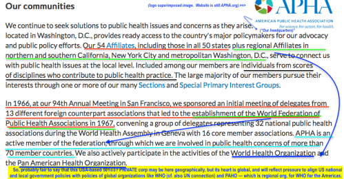 APHA reveals its longstanding (globalist) WHO and PAHO tendencies, and org. in all 50 states — and 4 Regions (N&S California, NY Metro + D.C.) for more leverage..