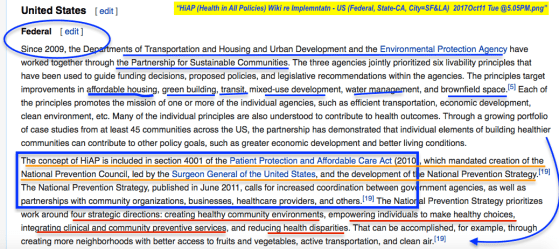 HiAP (HEALTH, not LAW*, in All Policies) Coordinated from Afar, Applied Locally, including throughout the USA. [Published Oct 24, 2017]