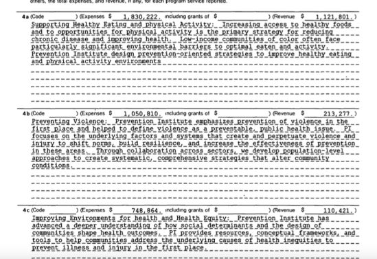| Prevention Institute | CA | 2015 | 990 | 33 | $12,705,888.00 | 94-3282858 |