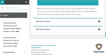 NACCHO annual repts page, bottom (plus some of sidebar). Interesting it says “2015-& 2016” because latest tax returns I found were for an earlier year.