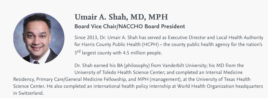 Org. Website references to EIN# 472127796 (not shown on its or NACCHO’s websites) Fndtn for Public Health, created only in 2015 by NACCHO (EIN#621246663) which is sole member of it and direct controlling entity.