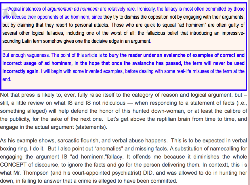 From my 9/18/2010 postThe Truth, Half the Truth, and Only Half the Truth — Australian “Ad hominem” Disgrace in Stratton/Thompson case updated for formats 7/22/2017. Within blue borders quotes another source (see that part of the post for usage examples and relevance), the two paragraphs after are my voice.