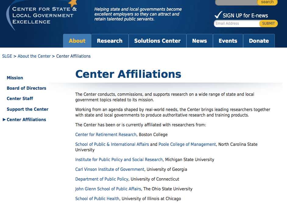 CSLGE “Affiliations” fails to identify ICMA and ICMA-RC. This center is less than a decade old, and its first tax returns clearly identify both those orgs. as Sched R “related entities.” Interesting that it was started right after the “Great Recession” and when the IRS Form 990 reporting requiremts. changed significantly, asking more detail about the organization itself on page 1, adding certain Schedules, etc.