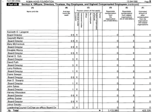Also, I thought you might like to see some of the famous people on the board (a few images, mostly volunteers) and — moved to the BACK of the return after the pages of grants, although the continuation page showed it could easily have been placed in order (where it belongs) as part of the return proper — the list of salaries paid to Officers, Key Employees, and Highest Paid Employees (incl. Michael Weinstein, $445K + benefits) for the RHF.