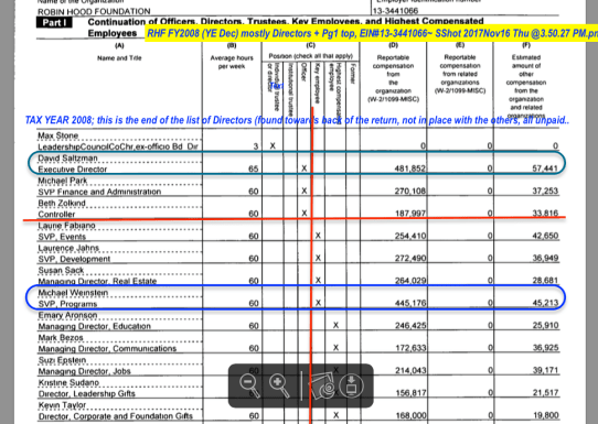 If my organization’s main theme of a sponsored organization was “slashing poverty” and “Poverty Is Complex” (which both these entities declare on, respectively, 990 exempt mission purpose, and home page of website), then I too might want to downplay how many staff are pulling in compensation from a quarter- to a half-million dollars a year, let alone in the mid $150K range – (and that the entity is itself nearing a half-billion gross assets, of which $114M are in “alternative investments — limited partnerships,” … or that somehow it made $8M profit on selling securities and the same year, posted a deficit of about the same on the REVENUES page under direct expenses (after contributions) for fund-raising…