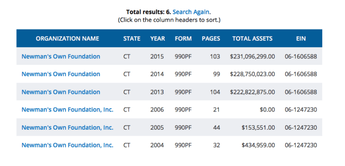 Newman’s Own Fndtn, then (terminated 2006, existed since the 1990s) and now (jumpstarted FY2004 with $78.6M in Partnership Interests from Paul Newman himself)